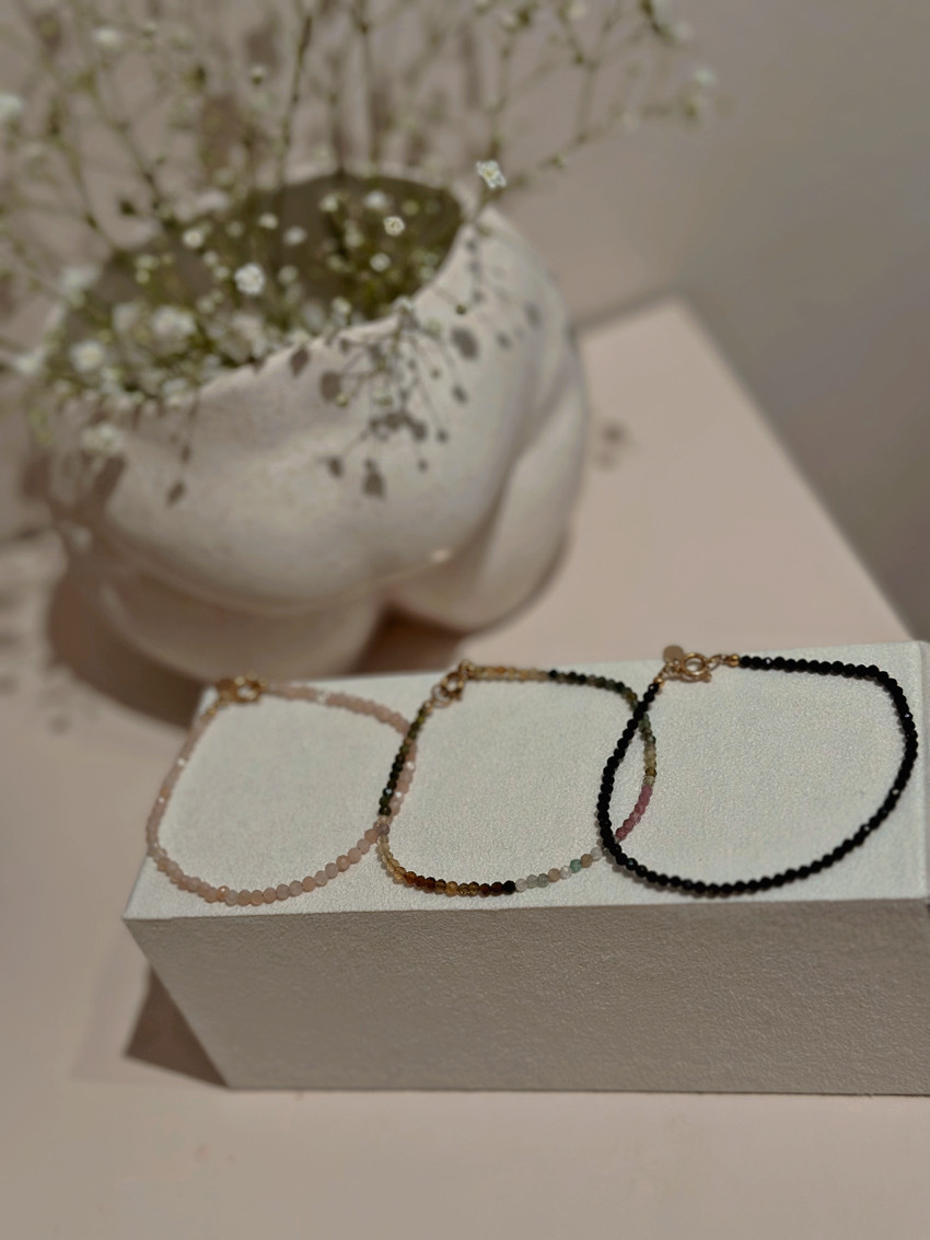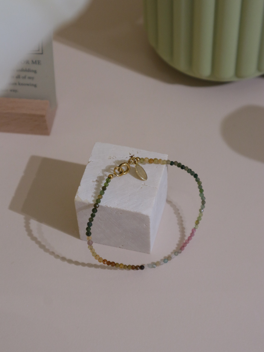 小巧串珠水晶手鍊,附 14K 鍍金五金配件